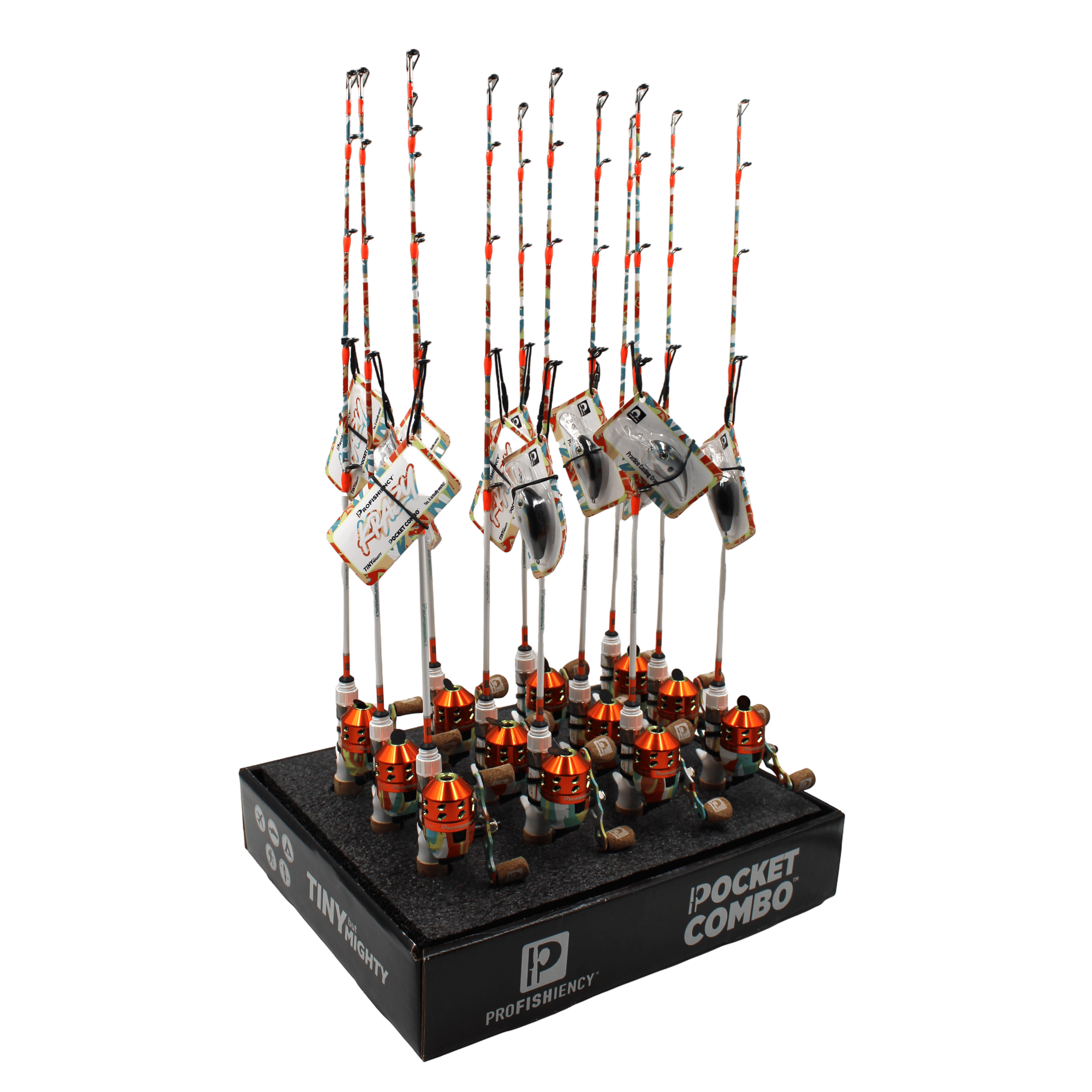 The Profishiency Krazy Tiny Dock Combo 12pc Countertop Display is a fun, eye-catching setup perfect for retail counters and impulse buys. Each combo features a compact rod and reel designed for easy use, making it ideal for kids, beginners, or casual anglers fishing from docks, ponds, and shorelines. Brightly colored and built with durable materials, these combos deliver both performance and personality. The ready-to-display box makes stocking simple and attractive—just open, set up, and sell!