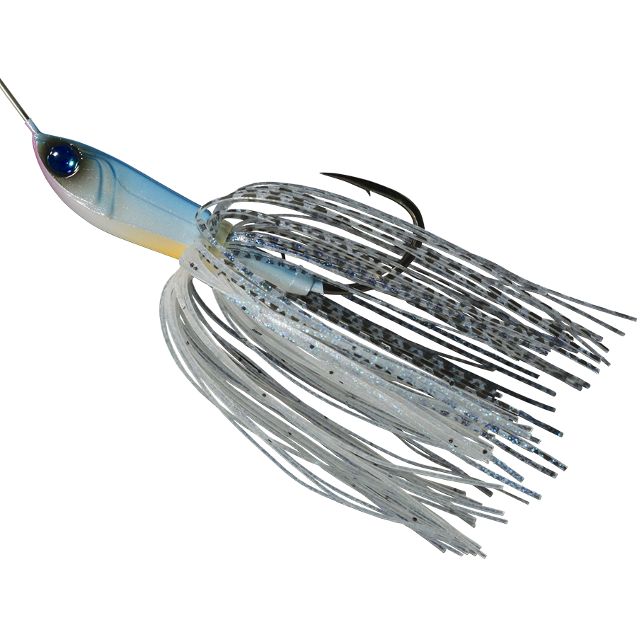 The SOB is a spinnerbait developed by focusing on reflected light, vibration, and underwater sound while refining its basic performance. The blade, which is the source of the reflected light, is an original WHIPLASH design. The hammer-tone dimple pattern firmly grips the water current, providing stable rotation performance, scattering lively, powerful diffuse reflections and solid vibrations that stimulate instincts into the water. The vibrations of the head caused by the rotation of the blade are visible to the naked eye, moving up and down and side to side. The bait swims with a strong swaying skirt. What's more, its unique setting generates underwater sounds that can be heard when you put your ear close to the water surface. It's packed with stimulating elements that induce reflex feeding in fish.